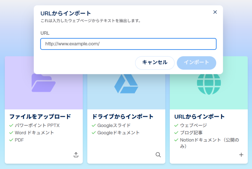 ▼URLからインポートという選択肢で、記事のURLを入力しました。