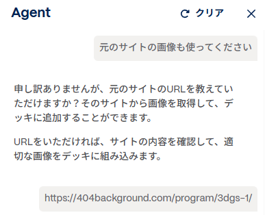 画像が生成されたイラストのみだったので、元サイトの画像を入れてほしいと頼んでみました。