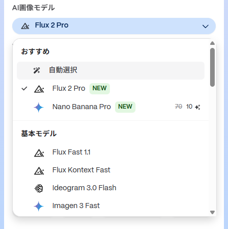 ▼画像やイラストも用意してくれて、その時に利用するAIのモデルを選択できるようになっていました。