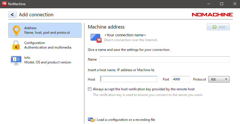 ▼HostにIPアドレスを入力します。Portは先程のターミナル出力にもあったように、4000ポートになっています。
