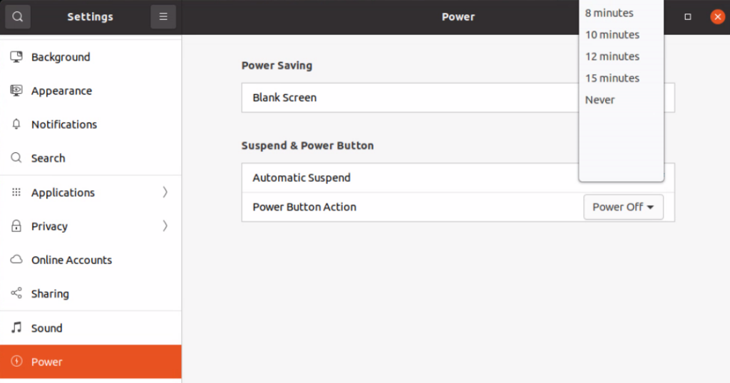 ▼PowerのBlank ScreenでNeverに変更しました。