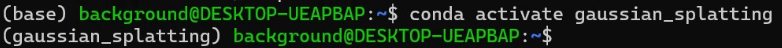 conda activate gaussian_splatting▼再度ターミナルを開いたときは、最後のコマンドを実行するとアクティベートされます。