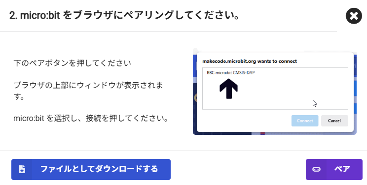 ▼ブラウザにペアリングする必要があるようです。ペアを選択しました。