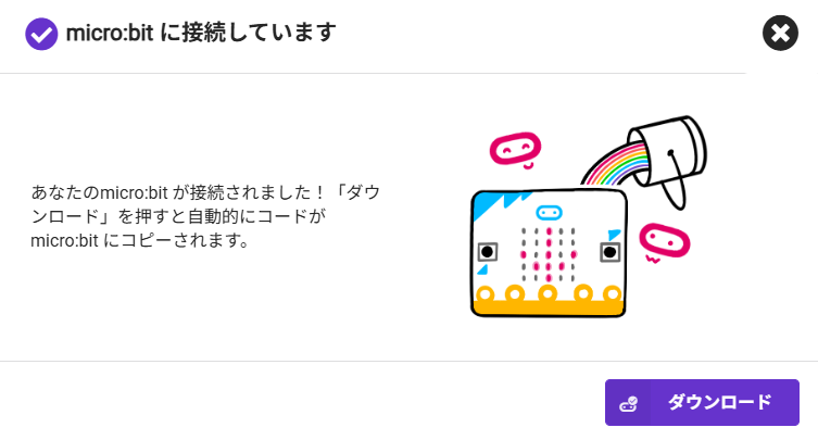 micro:bitをコンピュータに接続した状態で、Make Codeのダウンロードボタンを選択しました。