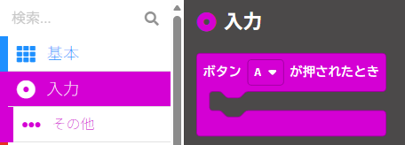 ▼入力の、ボタンが押されたときというブロックを追加しました。
