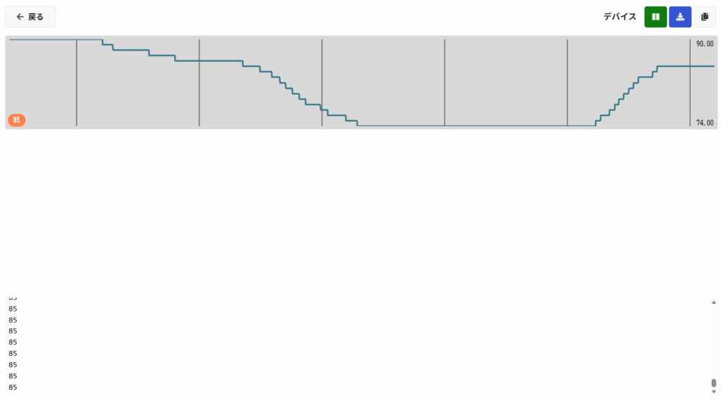 シリアル通信で出力されるはずのデータが、グラフと数値で表示されていました。