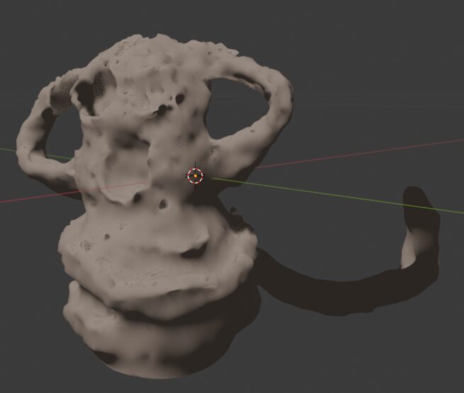 今回のハニワをメッシュ化したときのパラメータで、もっと大きなモデルに対してメッシュ化すると、おかしな繋がり方をしていることがありました。点群同士の距離などが違いすぎる影響だと思われます。