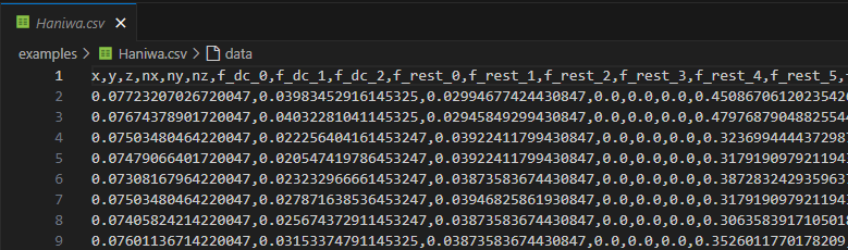 Blenderで3DGS形式のデータを取り込んだ時に、CSV形式のようにしてデータが表示されているのを見たことがありました。同様にして変換できるはずだったので、先述したデータ形式を踏まえて変換を行いました。
