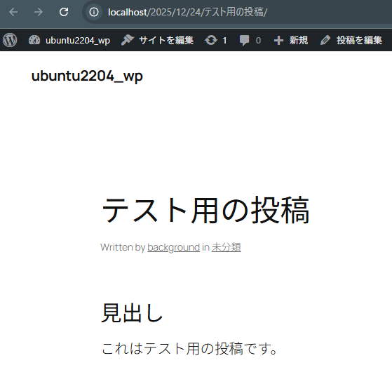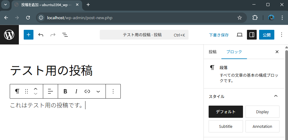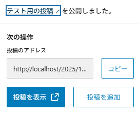 ▼テスト用の投稿を作成し、公開してみました。