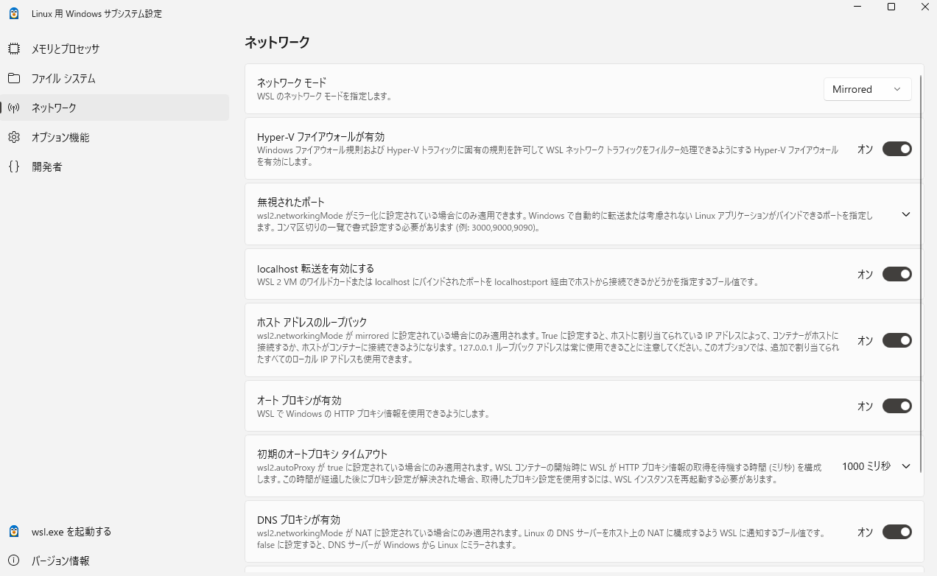 なお、この時点でlocalhostでアクセスできているのは、WSL2でミラーモードに設定しているからというのもあるかもしれません。以前必要になって設定したことがあります。