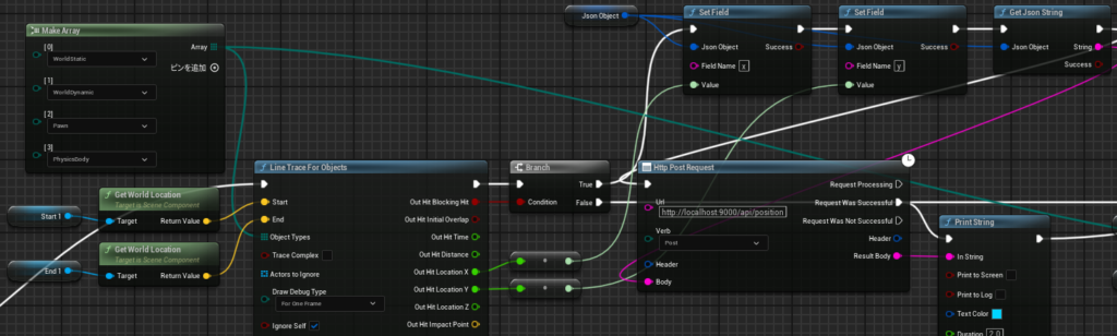 ▼ブループリントでLine Traceを設定しています。これをHTTP Blueprintで送信しています。