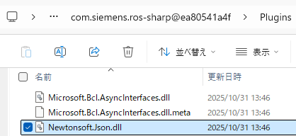 ▼古いバージョンだとプリインストールされている場合もあるという記述がありました。ROS#自体、Unity 6には完全に対応していないようです。