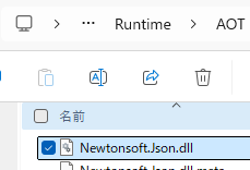 このうち、RuntimeのNewtonsoft.json.dllだけ残して、他のものは削除します。