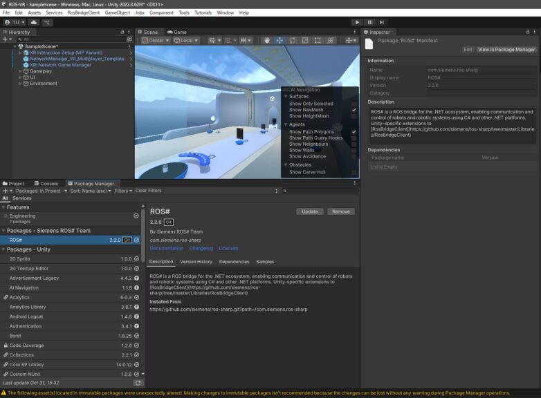 プロジェクトを起動して、前回の記事と同様の手順でROS#をインストールしました。