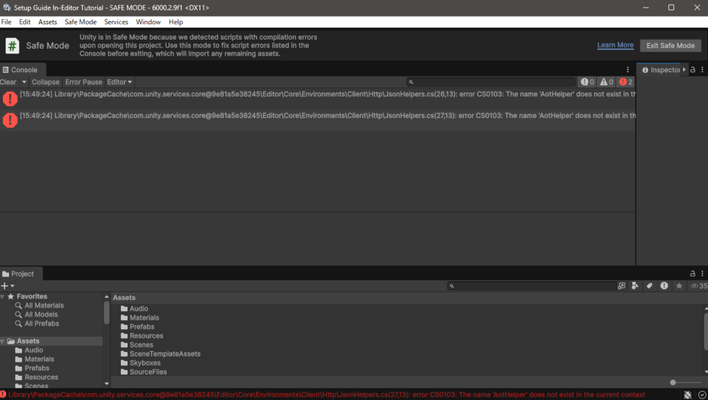 ▼セーフモードで起動し、The name 'AotHelper' does not exist in the current contextというエラーが出ていました。